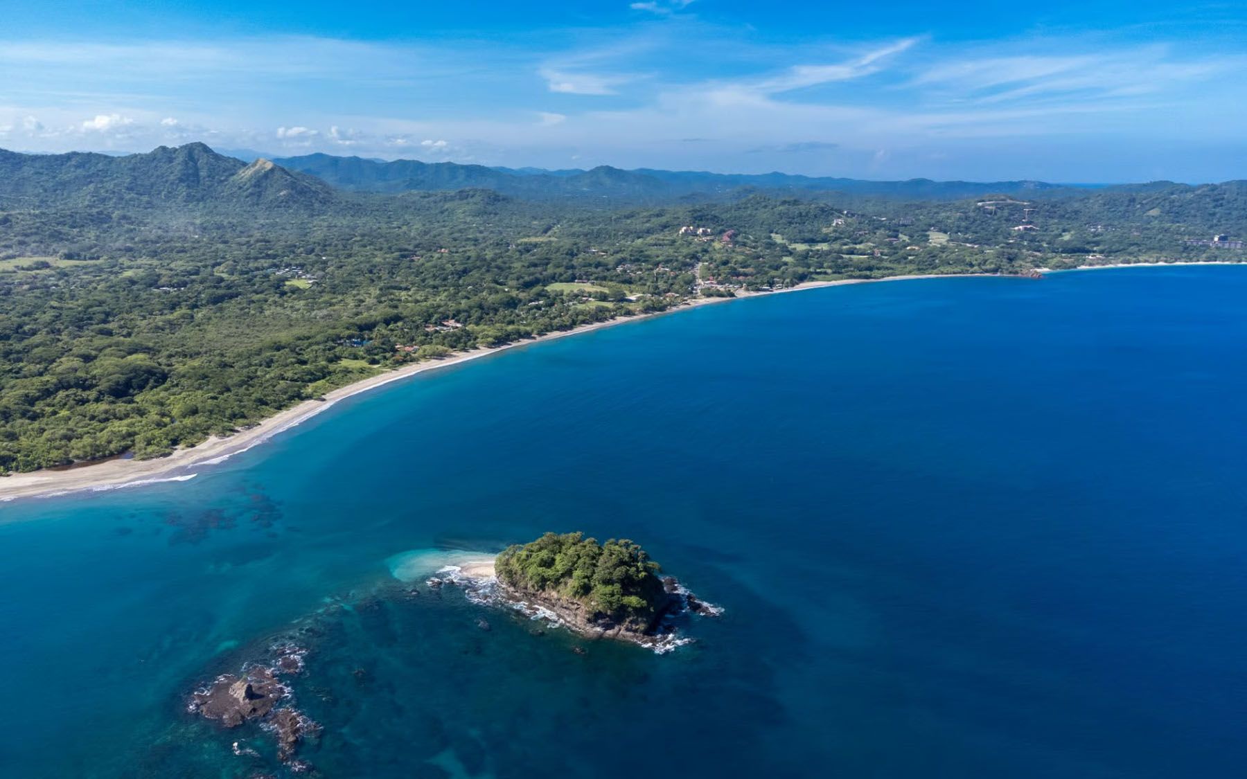 Close to both Playa Flamingo and Playa Conchal, Brasilito is a quiet and visually stunning location on Costa Rica’s Pacific coast. The soft darker sand makes a W shape and looks out at an island. This small town is a fishing village that offers local dining, shops, and friendly neighbors. It has a rustic Tico beach vibe. The area is home to fishing, catamaran cruises, scuba diving, and some of the best sunsets in Guanacaste. Brasilito offers plenty of secluded sand to explore and a variety of tropical flora at every turn. Close to conveniences but still somewhat remote, Brasilito is the ideal home for those who want the best of both worlds.