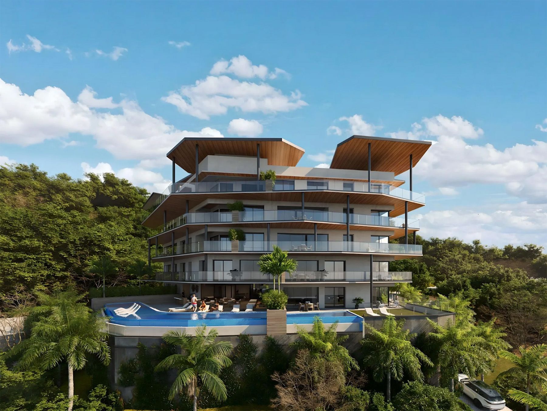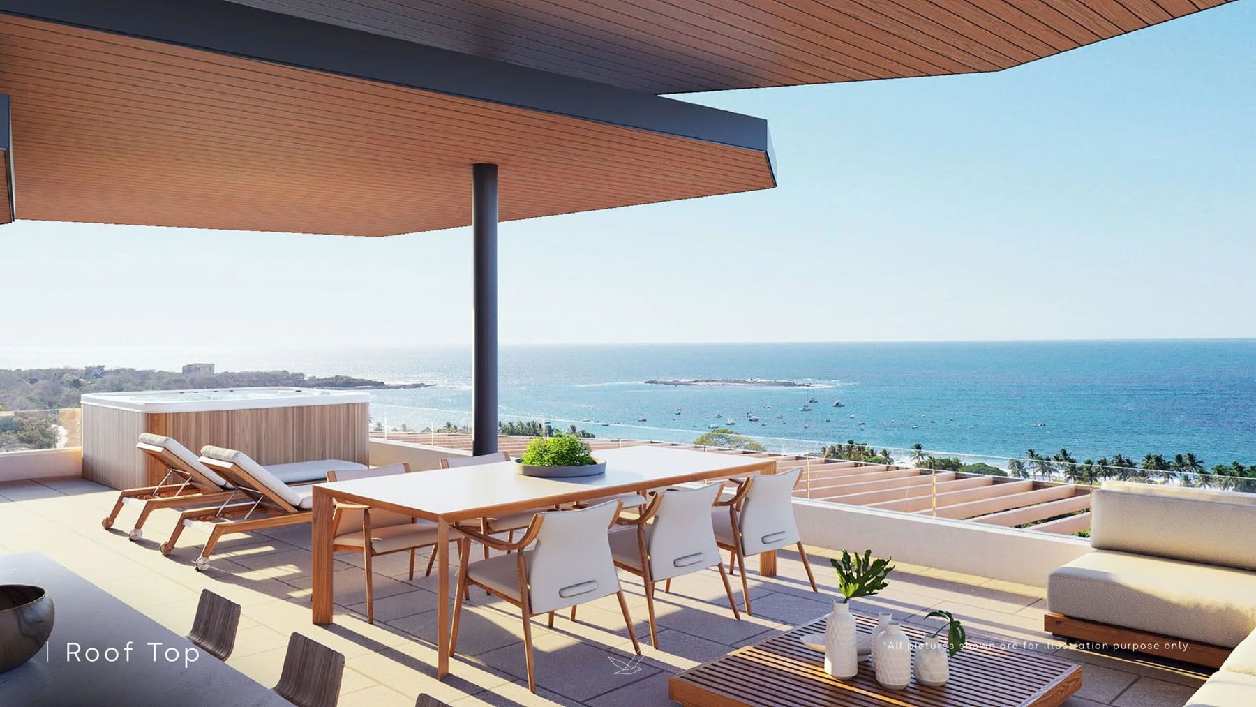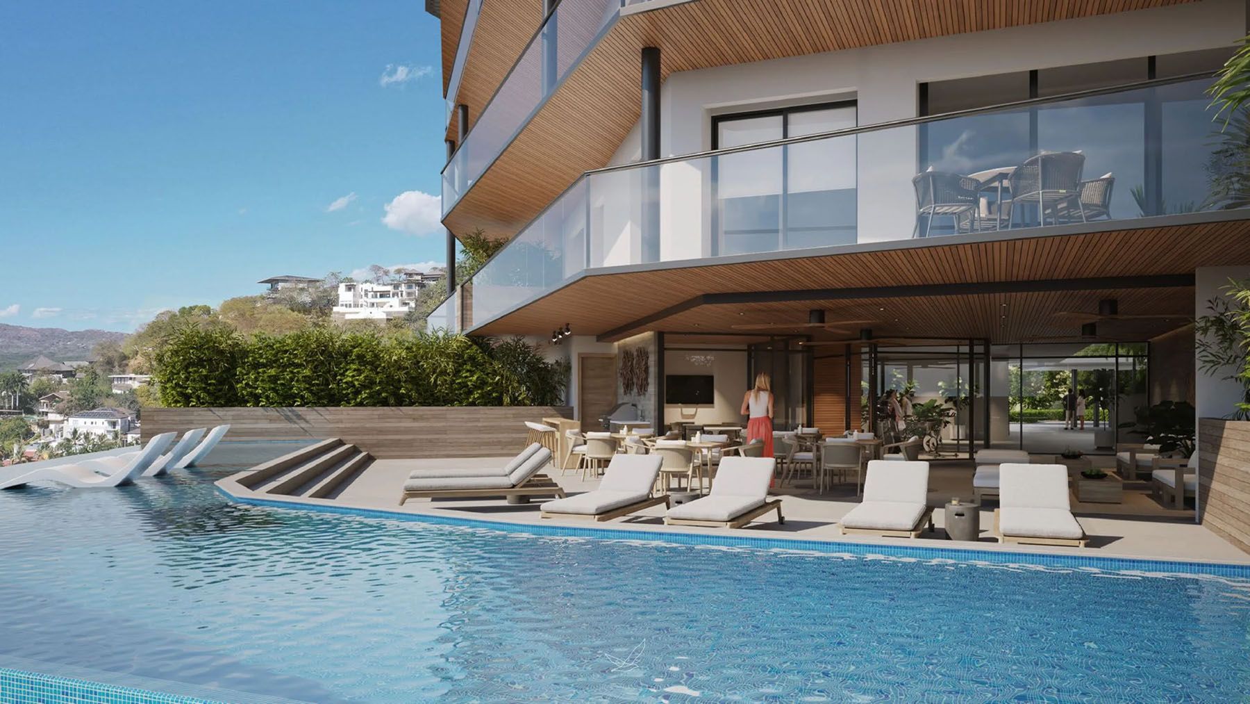 The epitome of luxurious living! This residence features 4 bedrooms, and 4.5 bathrooms, boasting awe-inspiring vistas of Playa Langosta Natural Preserve and beyond. With double-height social areas and an open-concept design, the home includes a stunning spiral staircase leading to a private rooftop lounge. Enjoy panoramic ocean views of Langosta and Tamarindo bays, offering an ideal spot for sunset viewing with outdoor seating areas, a kitchen, and a jacuzzi. Spanning 423m2 of living space, the unit provides 3 underground parking spaces and 1 warehouse.